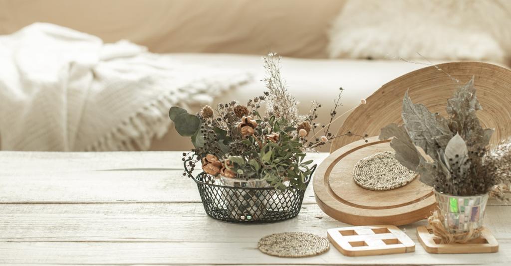 Kalkfarben sind diffusionsoffen, schimmelhemmend und in samtmatten Nuancen erhältlich. Wer lösemittelfreie Rezepturen wählt, vermeidet Mikroplastik und unnötige Zusätze. Die Verarbeitung ist unkompliziert, der Effekt sofort spürbar. Poste gern deine Lieblingsfarbtöne und wir stellen eine inspirierende Community-Palette zusammen.